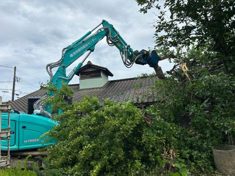 事前に建物内部の片付けをある程度進めていただいておりましたが、解体前には重機での樹木伐採も必要でしたので、そちらも含めて対応させていただきました。