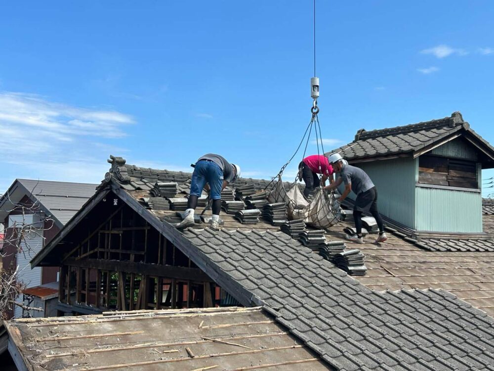 解体中は、瓦の手降ろし作業からスタートし、建物の構造を丁寧に確認しながら慎重に進行。