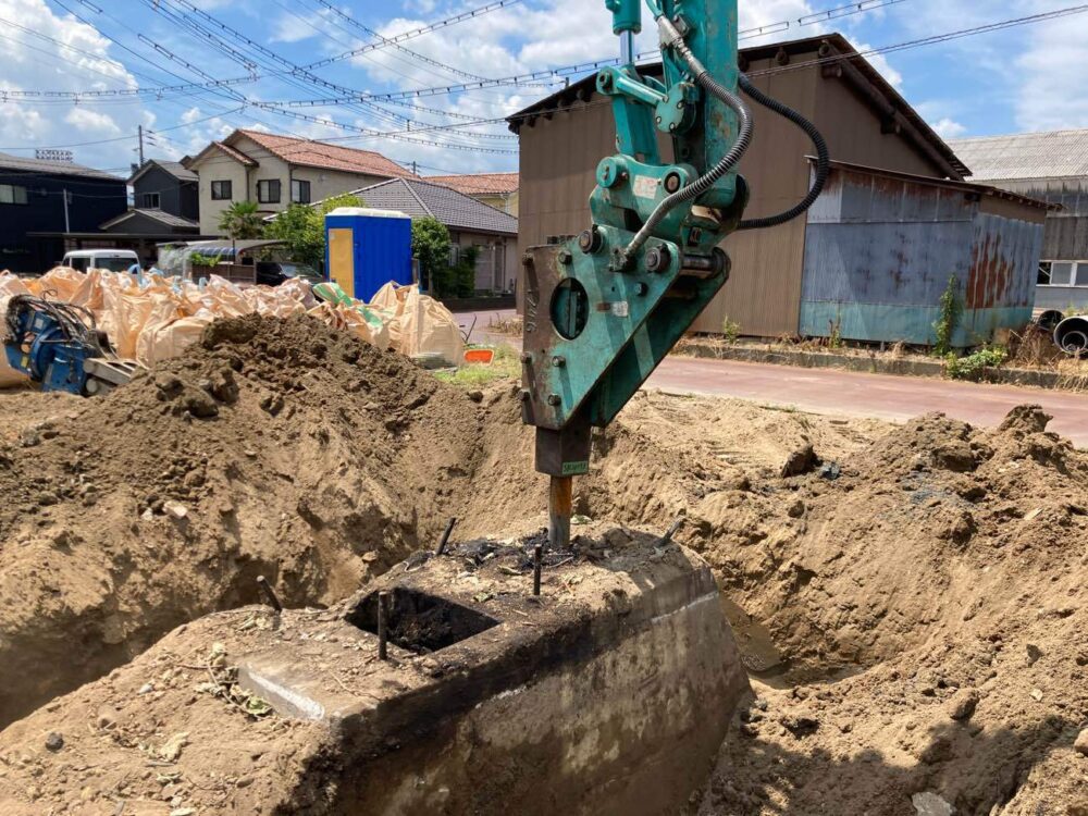 重機が入ってからは一気に解体が進み、作業場特有の基礎コンクリートのハツリ(破砕)作業まで無事に完了いたしました。